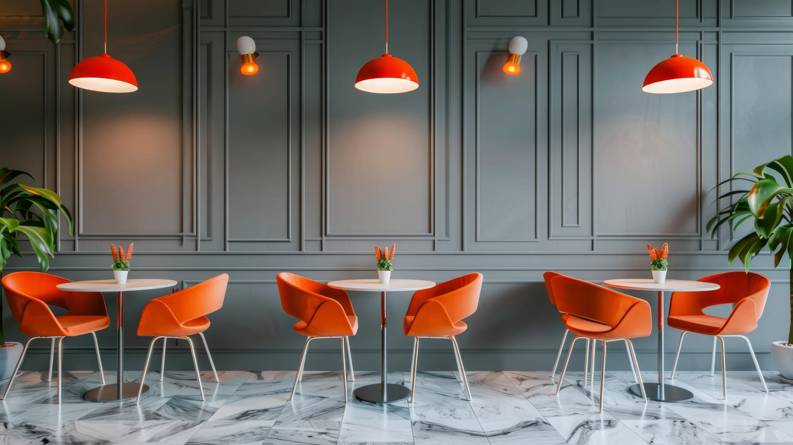 تلعب الألوان دوراً مهماً في التأثير على شهية العملاء وحالتهم النفسية، فالألوان الدافئة مثل الأحمر والبرتقالي قد تحفز الشهية، بينما تمنح الألوان الهادئة مثل الأزرق والأخضر شعوراً بالراحة والاسترخاء.
